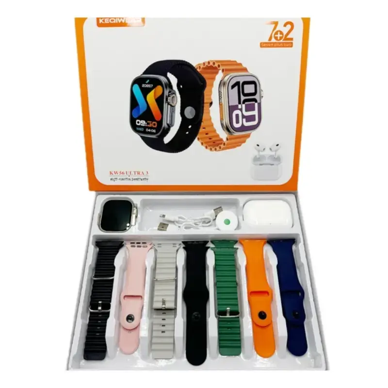 پک ساعت هوشمند و ایرپاد پرو مدل KEQIWEAR KW56 ULTRA3 با 7 بندساعت